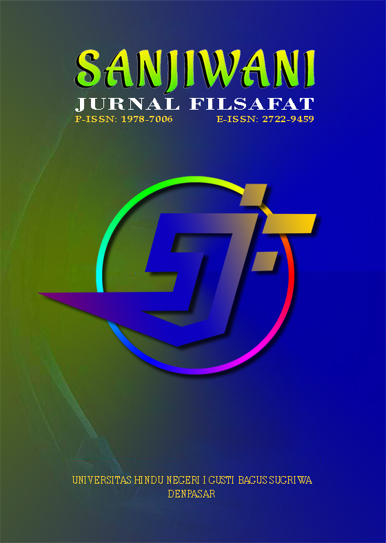 Nama Jurnal : Sanjiwani: Jurnal Filsafat Frekuensi : Maret dan September DOI : https://doi.org/10.25078 ISSN Cetak : 1978-7006 ISSN Online : 2722-9459 Indexing : Sinta, Garuda, Google Scholar, Road, Moraref, Dimensions, Scilit, Base, Crossref Editor-in-Chief : Ni Luh Gede Wariati Kontak : jurnalsanjiwani@uhnsugriwa.ac.id Penerbit : Universitas Hindu Negeri I Gusti Bagus Sugriwa Denpasar Deskripsi Sanjiwani merupakan jurnal ilmiah yang dikelola oleh Jurusan Filsafat Timur Fakultas Brahma Widya Universitas Hindu Negeri I Gusti Bagus Sugriwa Denpasar, yang hadir untuk memberi ruang dan gerak bagi para penulis yang memiliki visi untuk mengembangkan dan menyebarluaskan nilai-nilai filsafat. Implementasi ajaran filsafat tercermin pada setiap aspek kehidupan umat manusia. Sanjiwani sebagai Jurnal Filsafat berusaha melakukan pencerahan melalui kontemplasi hakikat berbagai macam realitas.