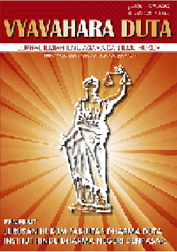 Vyavahara Duta: Jurnal Ilmiah Ilmu Agama dan Ilmu Hukum ISSN: 1978-0982, e-ISSN: 2614-5162 adalah jurnal ilmiah yang dikelola oleh Jurusan Hukum, Fakultas Dharma Duta, Universitas Hindu Negeri I Gusti Bagus Sugriwa Denpasar. Tujuan utama dari jurnal ini adalah untuk menerbitkan karya-karya ilmiah di bidang ilmu hukum dan Hukum agama. Scope dari jurnal Vyavahara Duta meliputi kajian-kajian spesifik di bidang hukum agama, hukum adat, dan hukum nasional. Vyavahara Duta terbit sebanyak 2 kali dalam setahun pada bulan April dan Oktober.